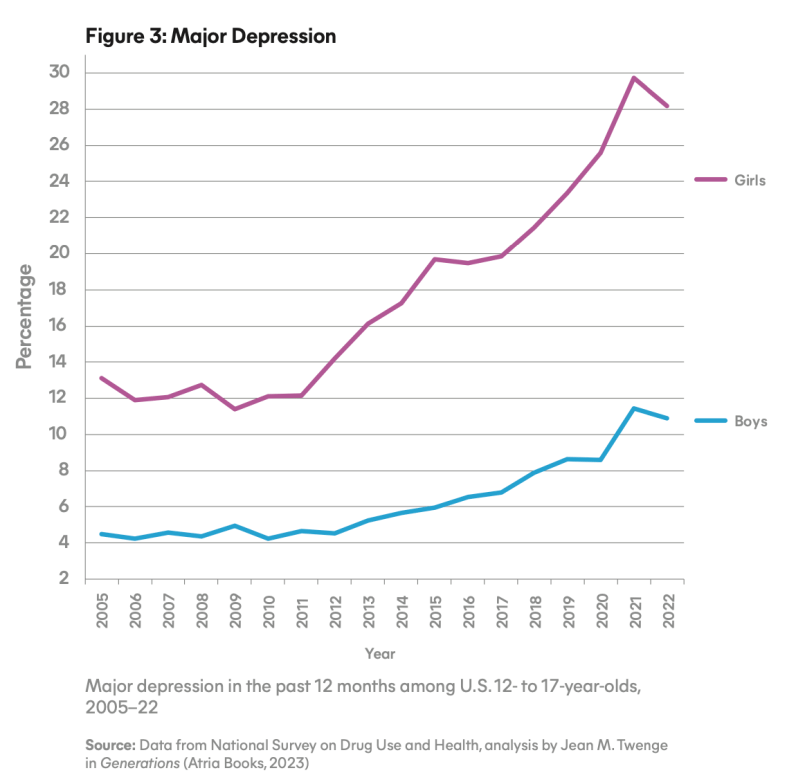 Matt Grossmann: Depression & anxiety have been increasing, especially among young girls; increasing social media & smartphone use are likely an important factor.