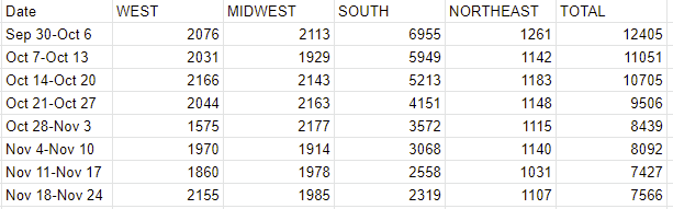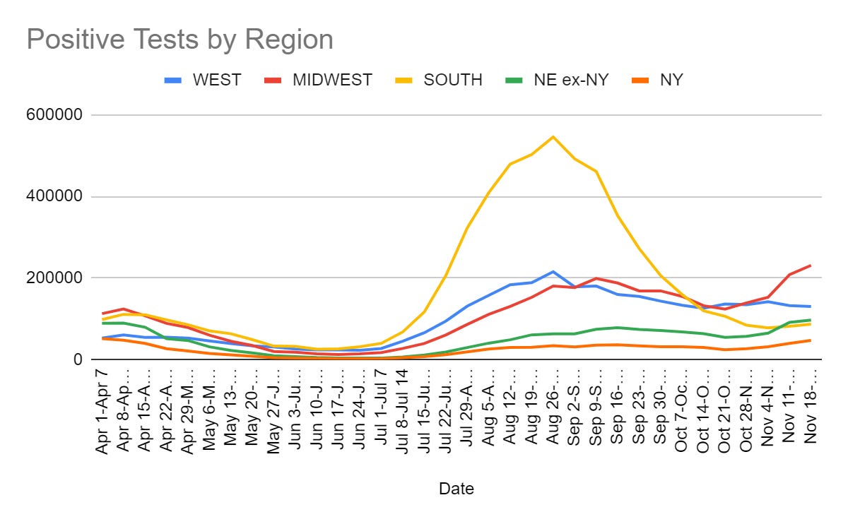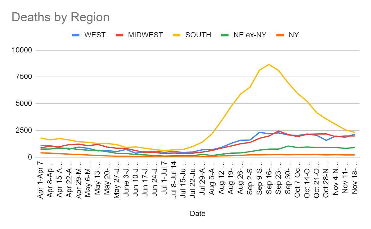 Cases are up, including unexpectedly up in the South, but these numbers are good news as reasonable expectations after last week were for things to get worse faster than this. Given deaths were right on path, it’s unlikely the holiday had an impact on reporting yet, so this is a large reduction in my estimate of how rapidly things are getting worse.