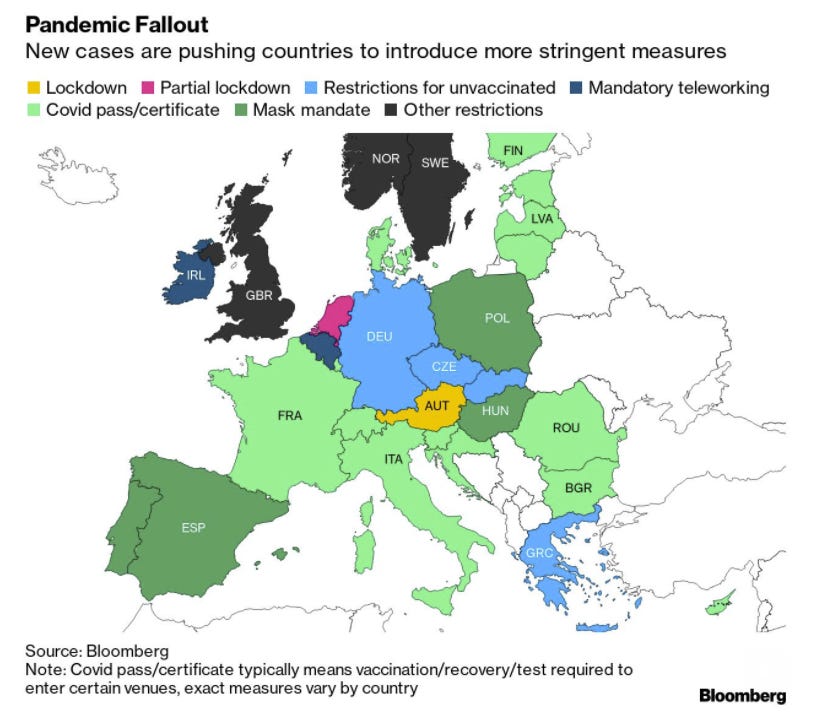 Last week regions of Austria instituted a lockdown on the unvaccinated. Either get vaccinated, or you can’t leave your house without an Officially Approved Excuse. That seems like it is clearly over the line. Then two regions extended it to the unvaccinated as well, then the country went into full lockdown.
