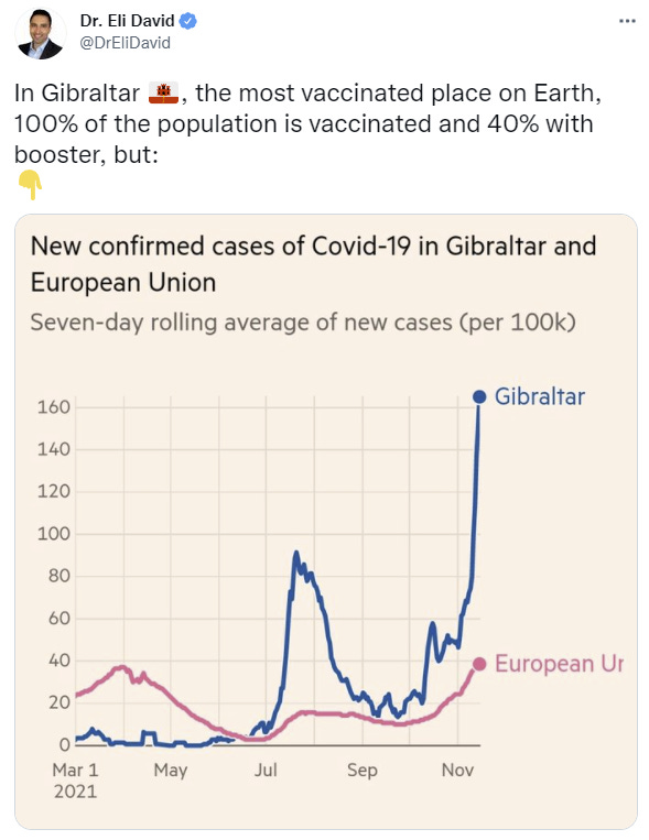 Meanwhile, if you’re in need of a bouncer today at Thanksgiving dinner as you demand negative Covid-19 tests, despite the availability of boosters, maybe it’s not about stopping disease?