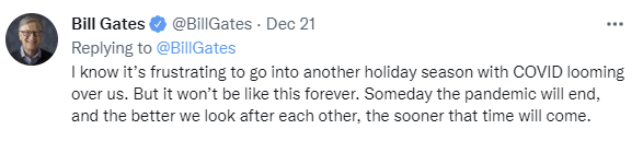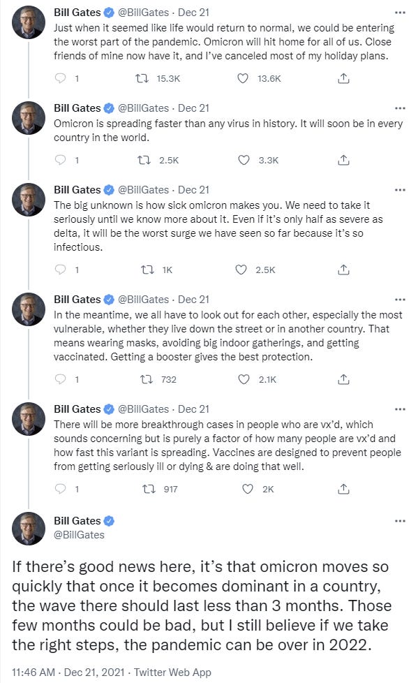 Bill Gates outlines his view of the situation, with four good things and one worry. The ‘worry’ is that people don’t trust untrustworthy governments, rather than those governments being untrustworthy. We’ve ‘learned a lot about how to deal with variants’ except that no we haven’t. We’ve ‘gotten really good at vaccines’ except we’re not moving that quickly to update them nor are we that good at getting people to get vaccinated (although obviously compared to last year, huge win and all that). We’re ‘developing better treatments’ but don’t seem that interested in scaling up and deploying them, and we’ve ‘learned a lot about mandates’ but it’s not clear to me what ‘we’ think we learned, or what that means for next time.