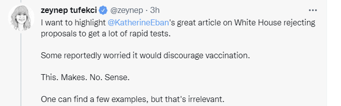 I don’t know what to say to that, at this point. The boosters, over the long run, increase demand and will result in matching capacity and supply. It’s our delaying and denying of the booster plan that made this a problem at all. Meanwhile, we continue to hold up production rather than working to expand it. If we wanted more vaccine doses, we would pay for them and allow them to be created. We didn’t, so presumably we don’t want this very much.