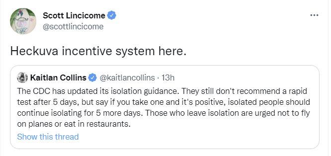 Of course, no one knows what the rapid test said, so if you choose not to look it doesn’t actually get you off of any real hooks. It’s Not the Incentives, It’s You.