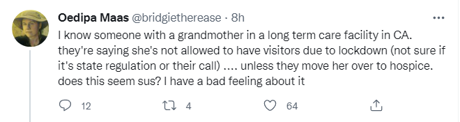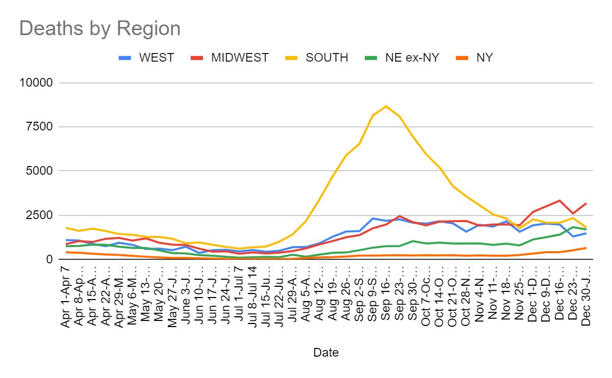 In terms of that, nursing homes are only now seeing the kinds of staff shortages and rates of illness that lead to more cases. To extent that things look good at first and then get worse when it seems like they should be getting better, this dynamic and similar things like it are the most likely reason.