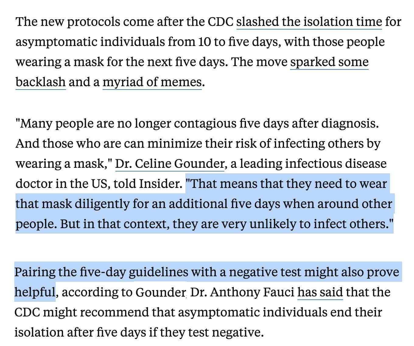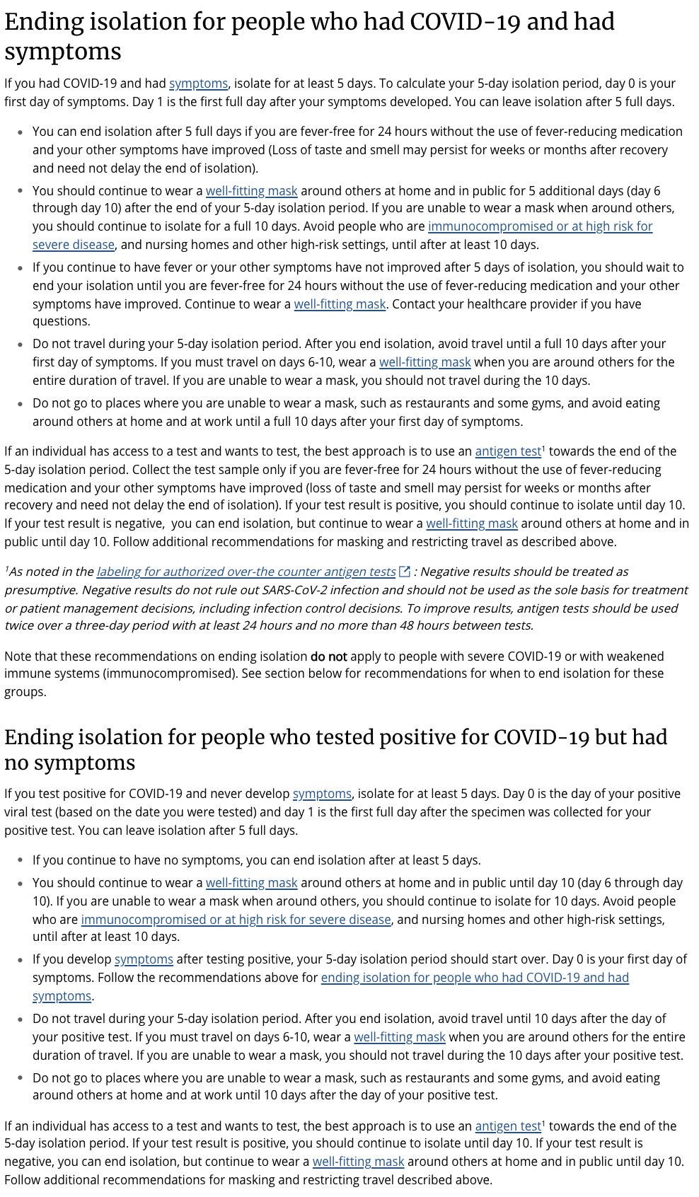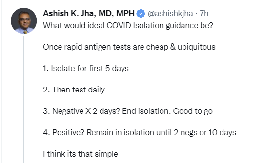 That’s a lot of words that effectively say ‘isolate for 5 days, then mask for 5, and if you have an actively positive test after 5 days, then isolate for the full 10 days.’