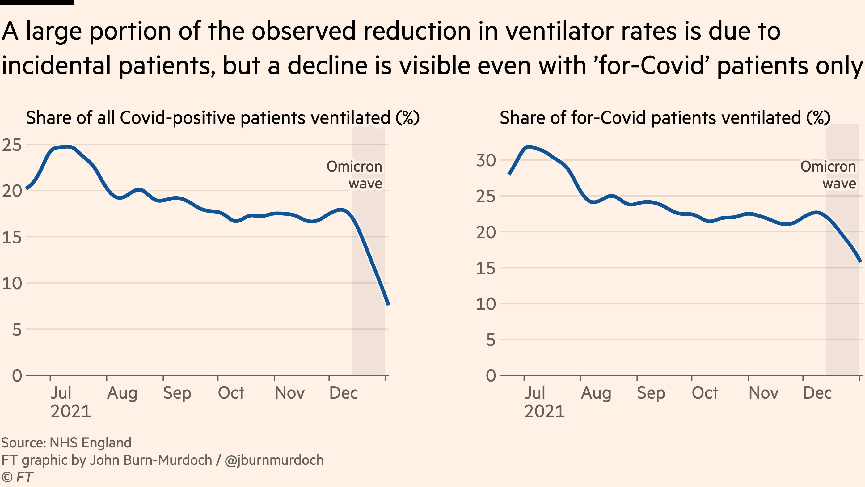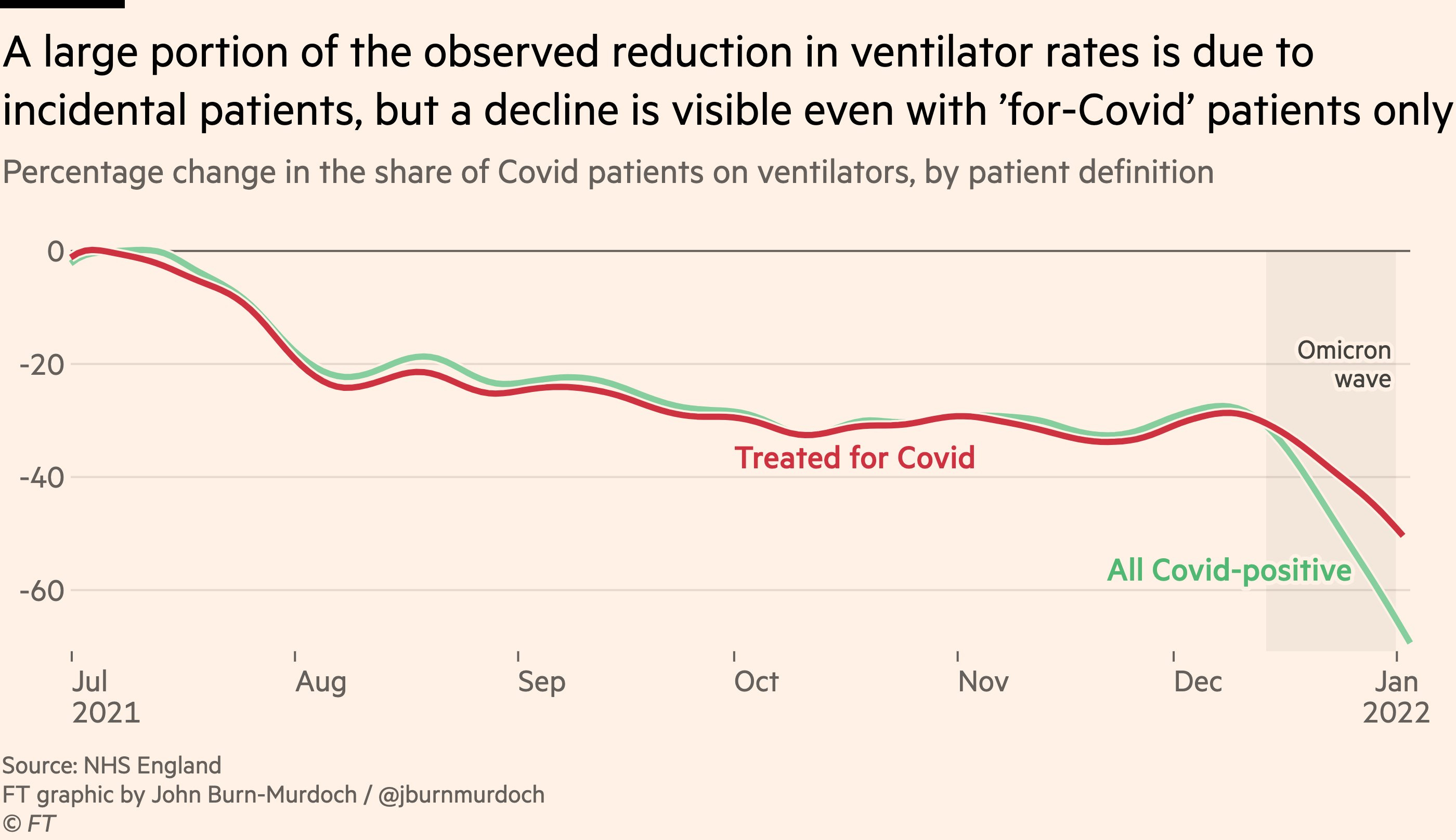 On top of that, even the ‘for-Covid’ patients are being ventilated substantially less, about -50% from July 2021, versus about -30% at the start of the Omicron wave, so an additional -25% from there.