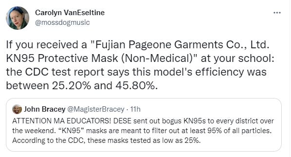Some fake KN95s got distributed over the weekend. The 95 means you stop 95% of particles, and by all reports these very much do not do that.