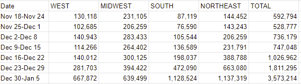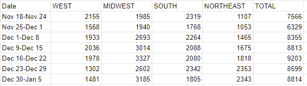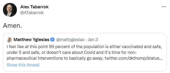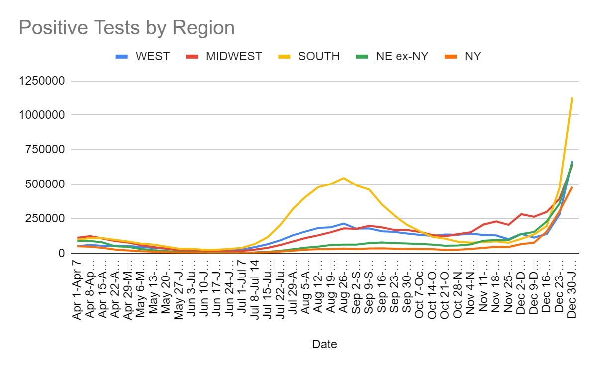 This is the dog that did not bark. The number damn well should have gone up a bunch, and it didn’t, and it makes me think that Omicron took over faster than I previously thought. I can’t think of another way to explain it, and the fact that I’m using that to explain it seems like very good news going forward.