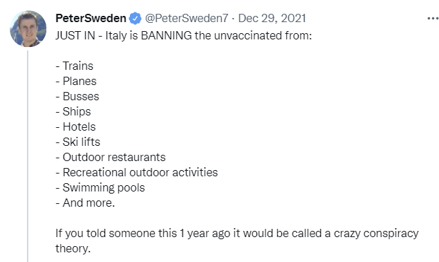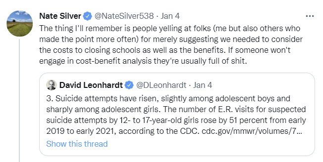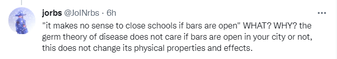 That’s the strategy. The strategy is to punish the people who won’t follow his orders. To piss them off. And continue doing so, until the end. This isn’t about precautions that make physical sense. This is about punishment and coercion, full stop. There’s no longer any pretenses otherwise, on any level.