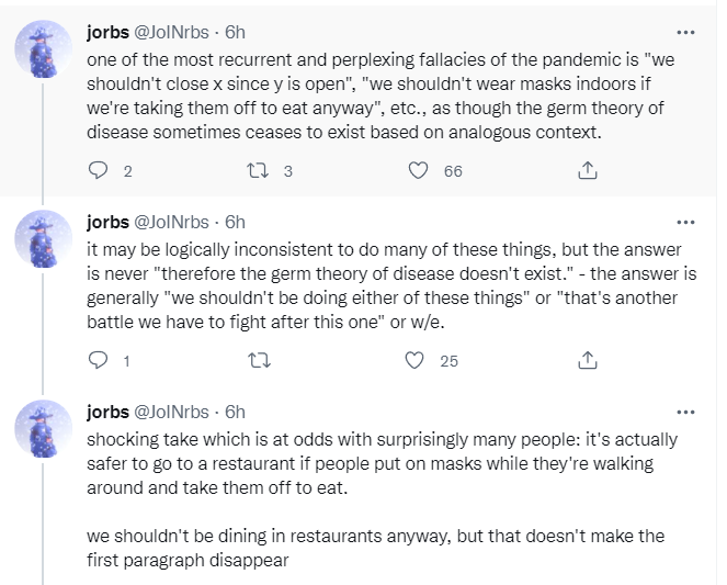 Also, as a general principle, our procedures that decide which particular things to mandate or forbid (in terms of Covid-19 and NPIs, or anywhere else) is not well-principled, well-sorted or well-ordered, and often dumb rules are implemented instead of better rules.