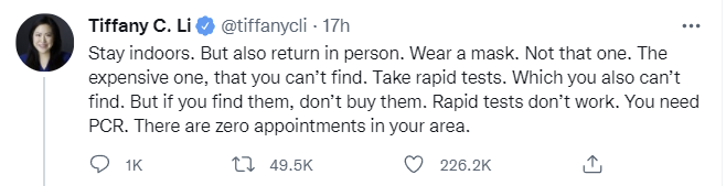 It’s also worth noting that if you’re exposed to Covid-19, you’re asked to isolate about as much as if you test positive, if anything longer because they have you test afterwards since who knows when you might or might not have gotten infected. So it’s ‘better’ to actually be positive than be ‘exposed’, even though basically everyone not working hard to avoid exposure is exposed.