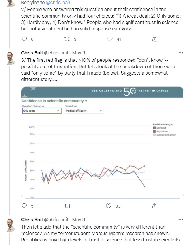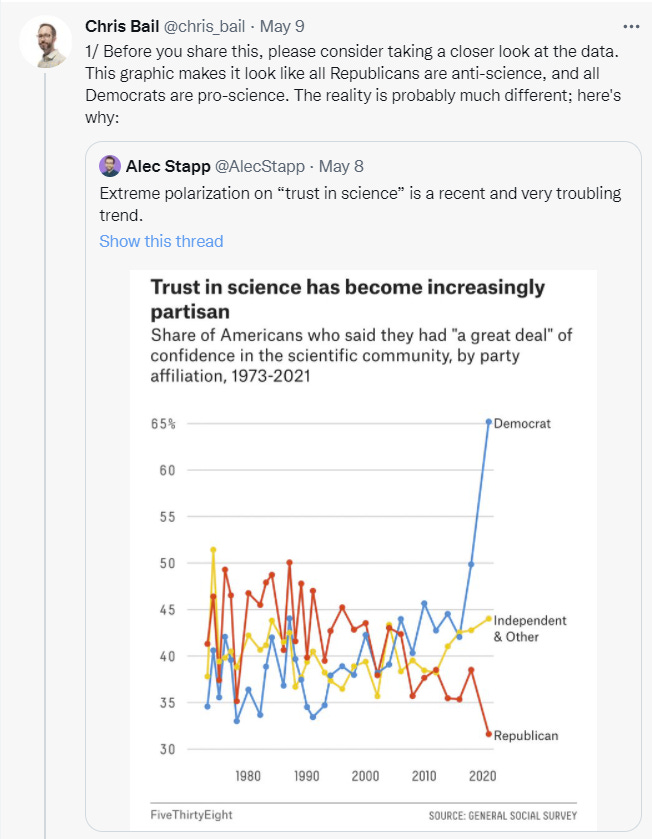 In other words, Alec’s quote mark starts too early. The polarization is in trust in ‘science,’ aka Science™, which is not something one should trust even in the good circumstances that didn’t involve the last two years of its track record.