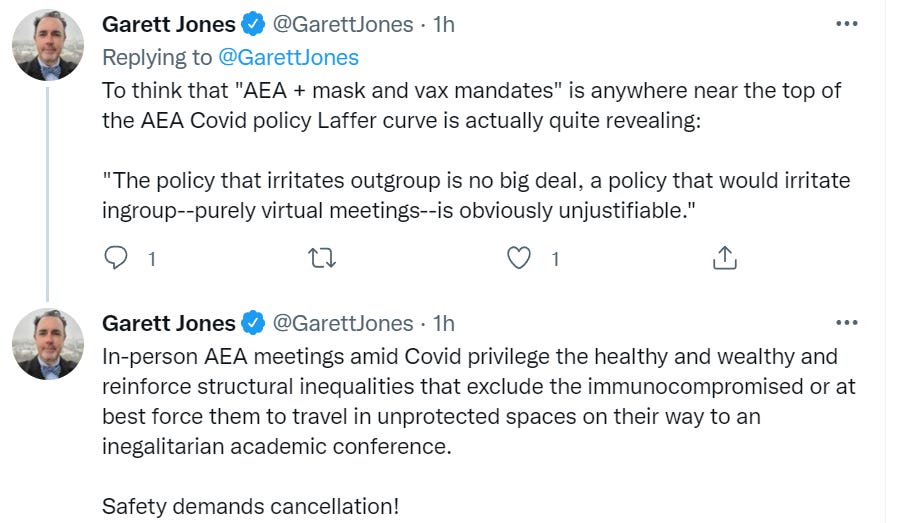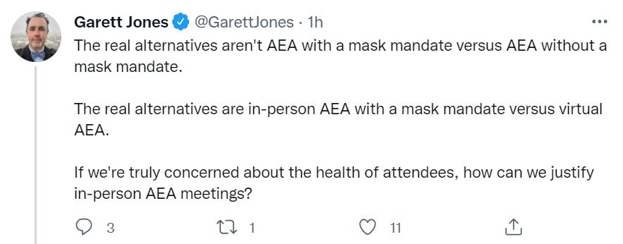 Economists are often asked why they aren’t rich. The American Economic Association requiring masks and boosters at its conference suggests a simple answer. Those who cannot trade, teach.