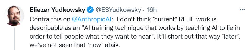 It is still bad news whenever the best performing technique is RLHF, because that will encourage further use of RLHF, which eventually does exactly the thing I described.