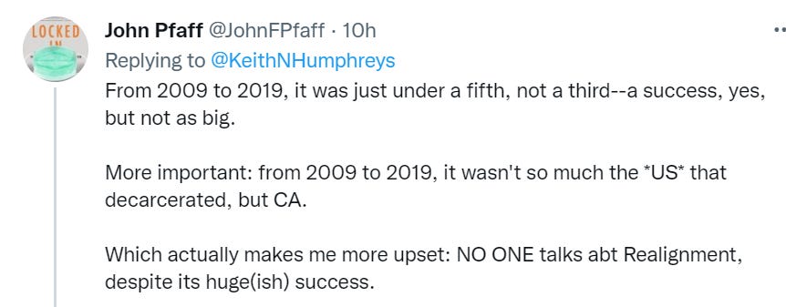 There are very reasonable complaints that California and in particular San Francisco kind of legalized crime on a small scale. One should not legalize (non-victimless) crime or universally decline to prosecute things like theft. I do not think this is directly the cause of much of the decrease in incarceration, as the jail times for such things tend to be short. Someone should still check.