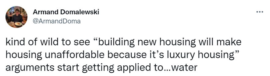 California commission unanimously rejects proposal to build a water treatment plant because the water would be ‘too costly for low-income customers.’ A fun game is trying to reconcile this with ‘we sell water at subsidized prices to all customers at all times’ and also ‘most of the water we use goes to agriculture for basically no money.’