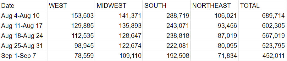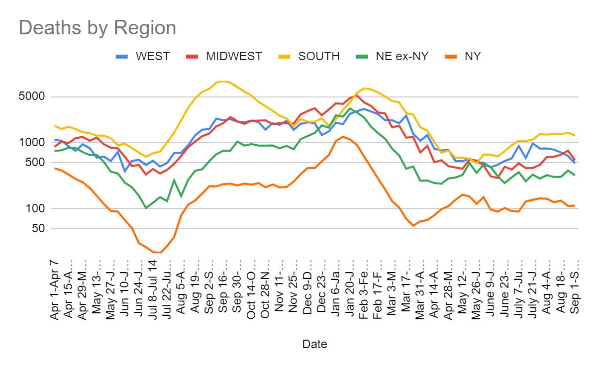 Prediction from last week (HOLIDAY): 420k deaths (-20%) and 2,550 deaths (-20%).