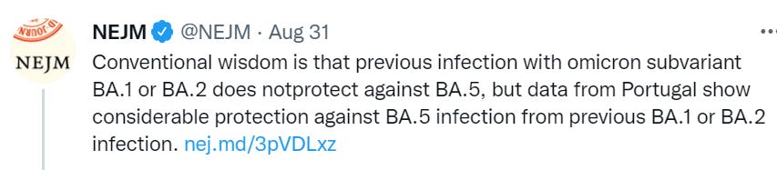 Claiming this is ‘conventional wisdom’ is Obvious Nonsense. We may have a new champion for use of the Law of No Evidence. Also, the graph tells us that non-Omicron strains were also found protective >50%. Given the origins of Omicron, a lot of the difference here is plausibly about time lapse rather than the strains themselves.