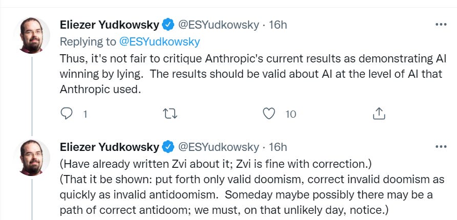 A correction: Last week I got too aggressively doomy about an AI paper. I was informed of this by a human named Eliezer Yudkowsky, who on reflection is correct, so I am learning. I am sorry and regret the error. We only want properly calibrated and accurate doom. Here is what I wrote.