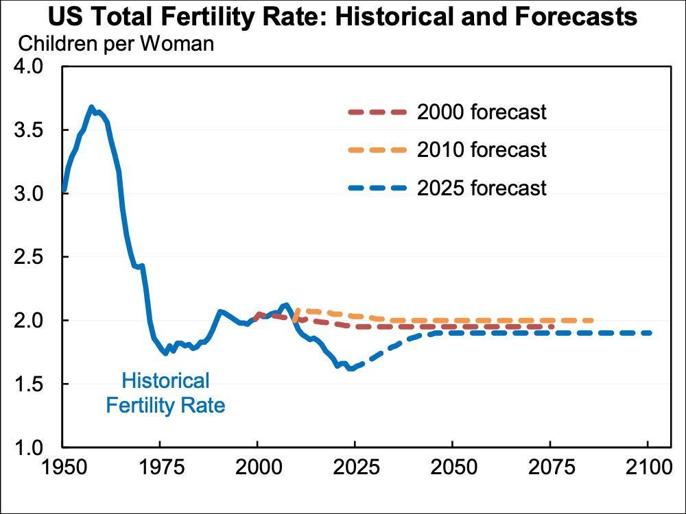 Jason Furman: Fertility rates are way below what the Social Security Trustees projected in both 2000 and 2010. And yet they have barely updated their long-run forecast. What’s the best argument for the plausibility of their forecast?