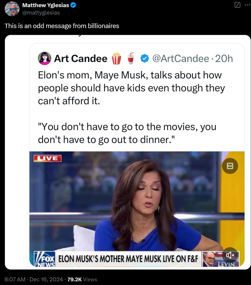America has the unique advantage that we want to have children, and like this man we are big mad that we feel unable to have them, usually because of things fungible with money. So we should obviously help people pay for this public good.