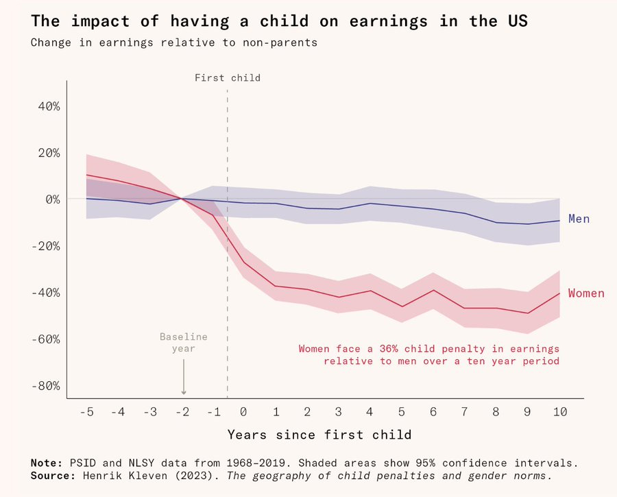 From Her Article: Women know this gap exists and plan accordingly: in countries where the motherhood penalty is keenest, the birth rate is lower.