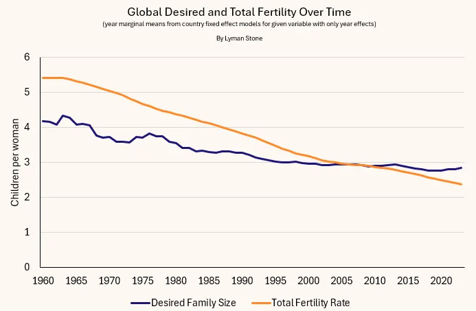 Lyman Stone, in his first Substack post, lays the blame for fertility drops in non-Western countries primarily on drops in desire for children, via individuals choosing Developmental Idealism.