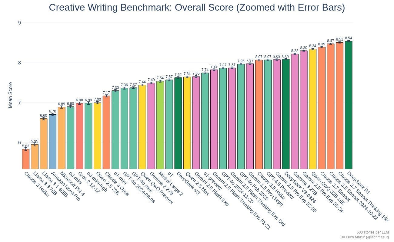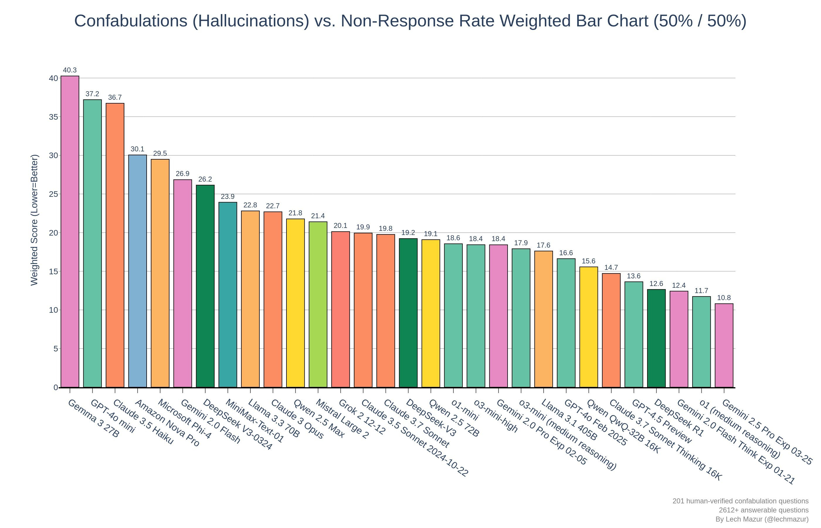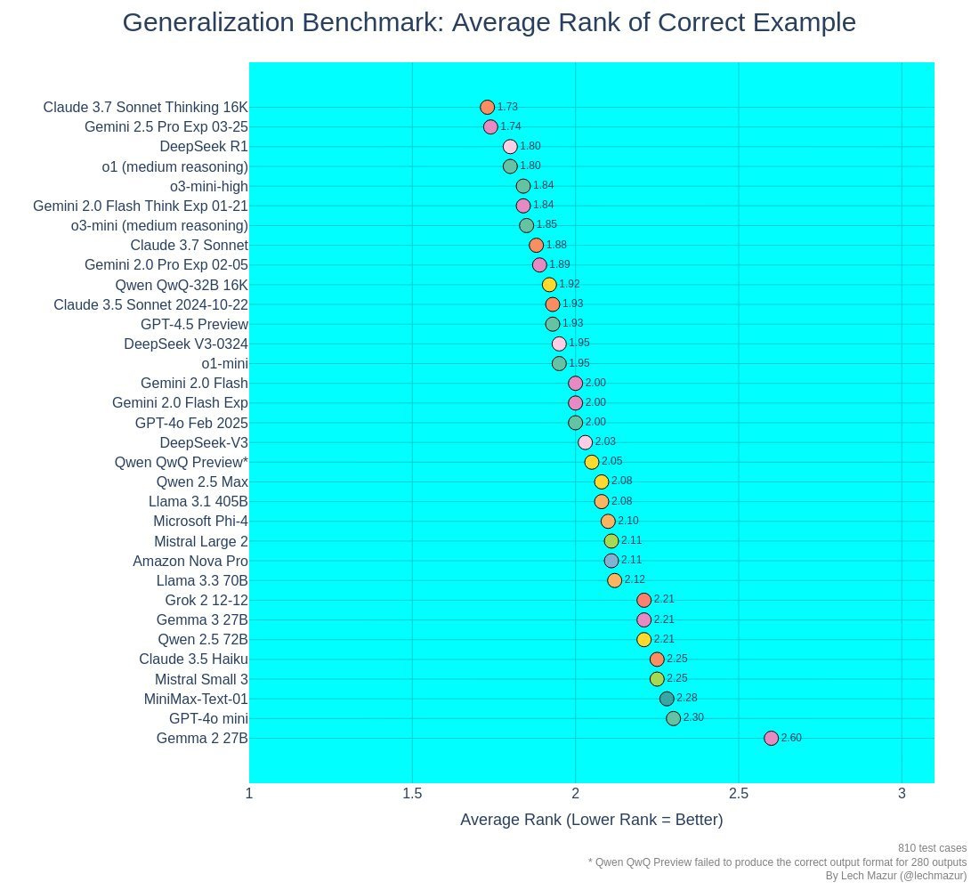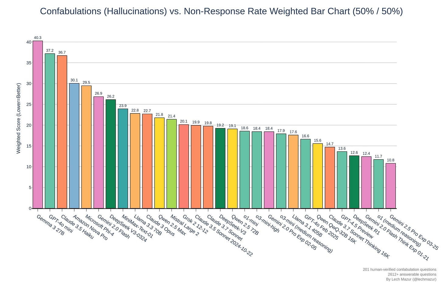 Note that lower is better here, Gemini 2.5 is best (and Gemma 3 is worst!):