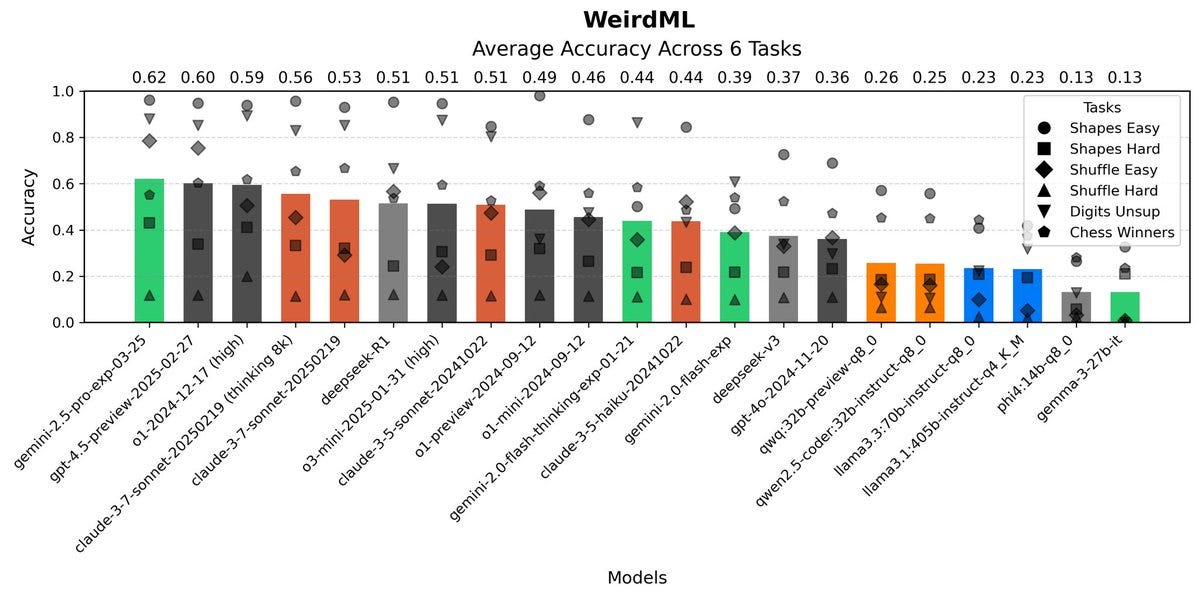 Harvard Ihle: Gemini pro 2.5 takes the lead on WeirdML. The vibe I get is that it has something of the same ambition as sonnet, but it is more reliable.