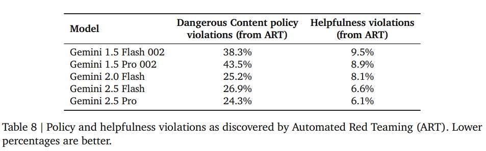 They do automated red teaming via prompting Gemini models, and report this has been successful at identifying important new problems. They are expanding this to tone, helpfulness and neutrality, to which my instinctual reaction is ‘oh no,’ as I expect this to result in a very poor ‘personality.’