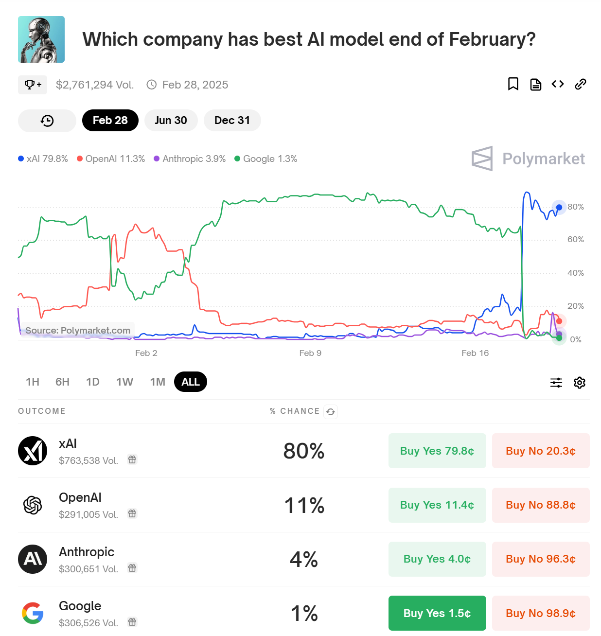 I will note that Google at 1.3% seems way cheap here, if I had handy capital there I’d buy some. I realize it’s less than two weeks to go, but have you seen the leaderboard? It seems entirely plausible that an upgrade to Gemini could leapfrog Grok. Whereas Anthropic at 4% seems rich, Claude does poorly on Arena so even if they did release a killer Sonnet 4.0 or c1 I would be unsurprised if Arena didn’t reflect that, and also they probably wouldn’t test on Arena in advance so there’d be a delay in scoring.