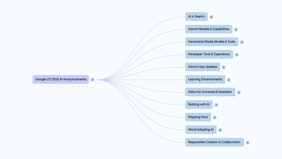 Google AI: We covered a LOT of ground today. Fortunately, our friends at @NotebookLM put all of today’s news and keynotes into a notebook. This way, you can listen to an audio overview, create a summary, or even view a Mind Map of everything from #GoogleIO 2025.