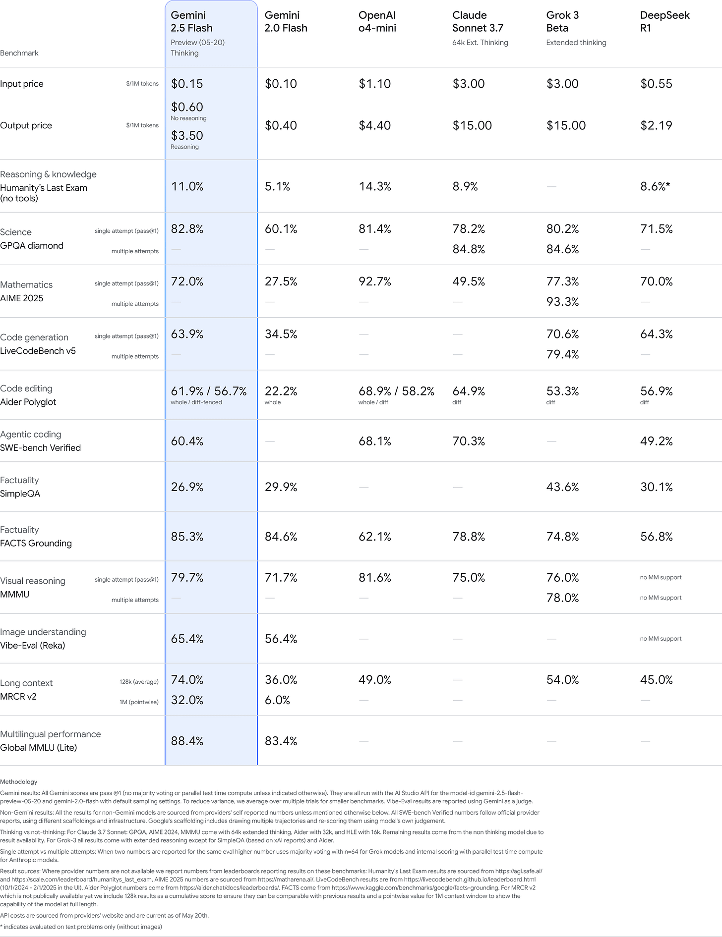 Gemini 2.5 Flash is technically still in preview, but it’s widely available including in the Gemini app, and I’d treat it as de facto released. It’s probably the best fast and cheap model, and the best ‘fast thinking’ model if you use that mode.