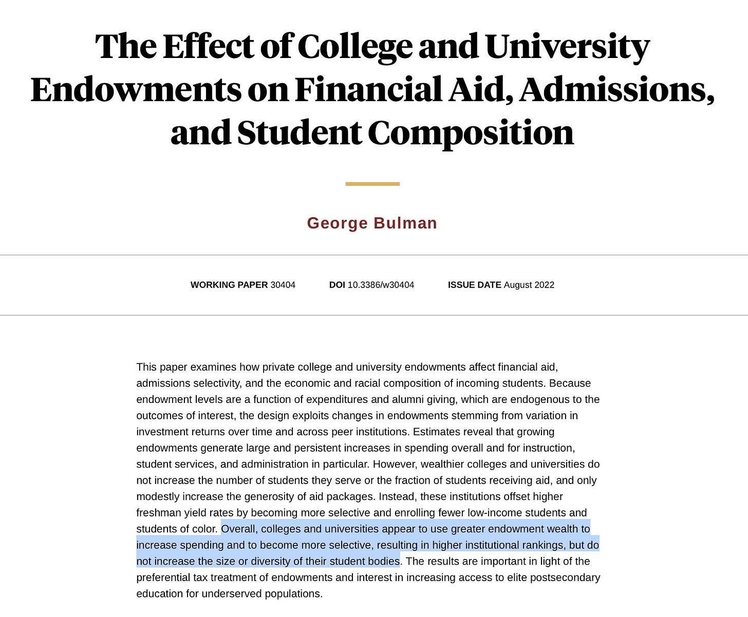 Would this reduce resources given to universities? Yes if we don’t compensate for it sufficiently, but it is not as if they use their resources on the margin to help students, or increase diversity, or lower tuition, or enroll more low income students. Again, they use it to compete. I do not see the value in that.