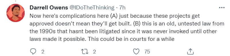 LA attorney using Housing Accountability Act to attempt to force construction to happen. Sounds like it overcomes important barriers while leaving other important barriers in place, so verdict remains unclear.