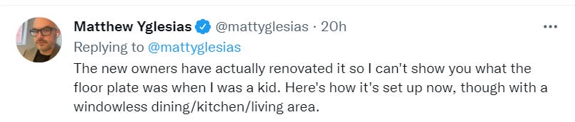 These and other similar rules are much more important now with the transition to work from home, and the need to convert a lot of office buildings to residential. If we pass a law allowing rule-breaking conversions in existing old buildings, rather than suddenly requiring them to meet a smorgasbord of new requirements, it would be a huge win.