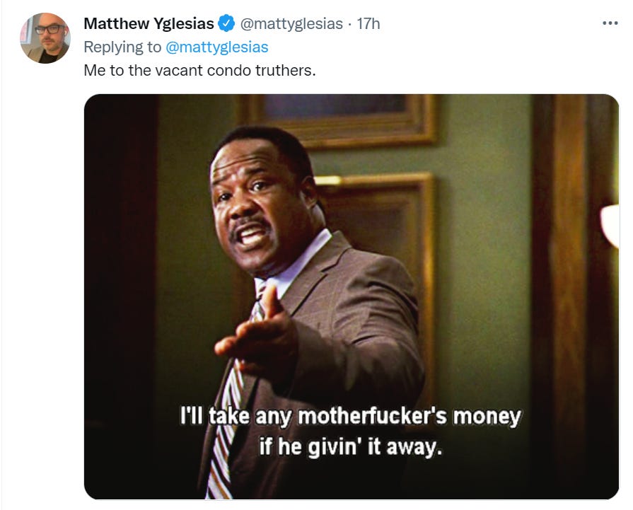 In a fun one, Matthew Yglesias points out that in Star Trek, the Federation has essentially all the same NIMBY problems that we do with regard to housing, so long as it keeps decisions under local control. Very little of it requires ‘greedy landlords’ or ‘homeowner value maximization.’ Supply and demand do not go away when you take away capitalism, they (at most) only stop being measured in money.