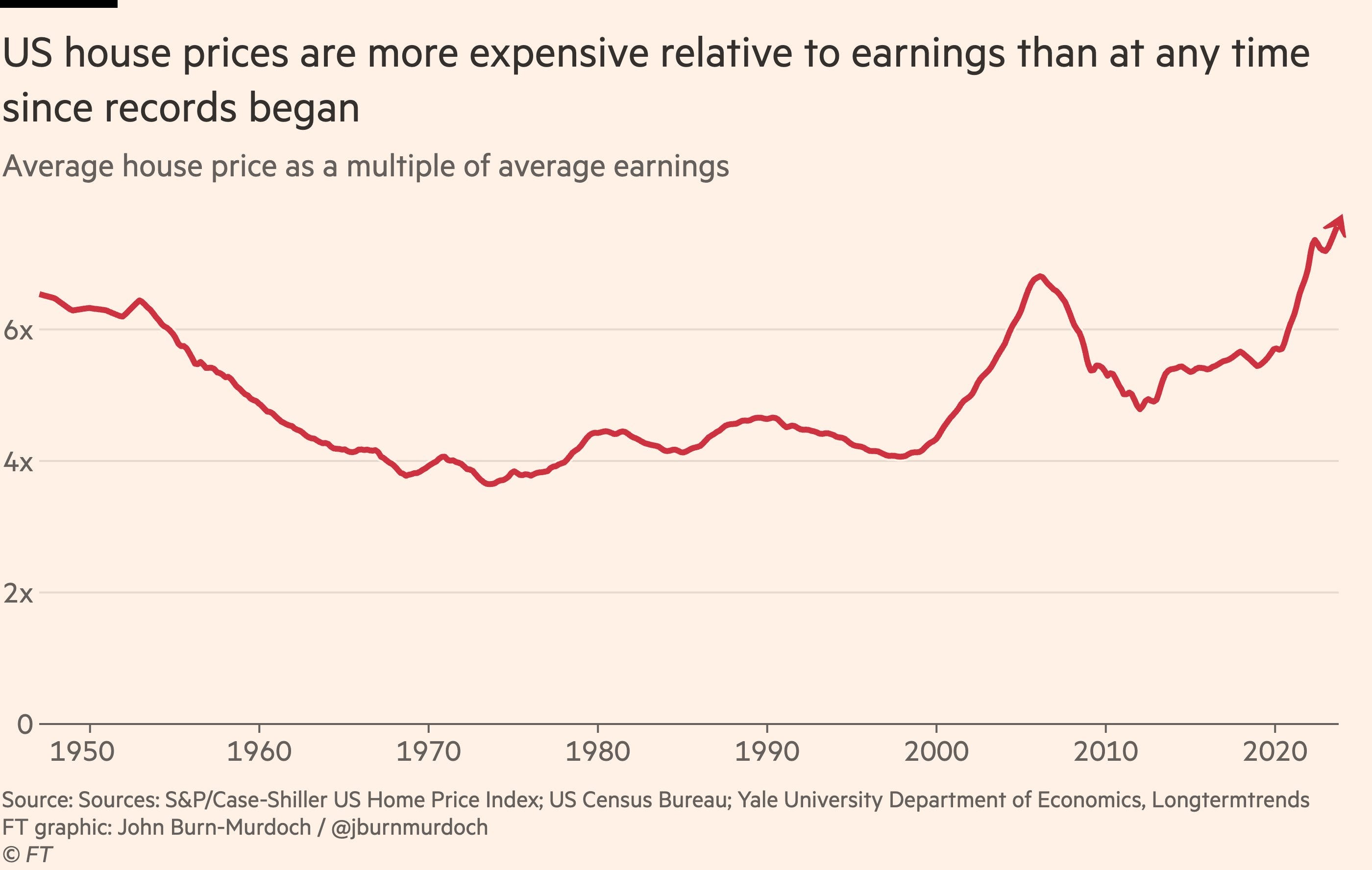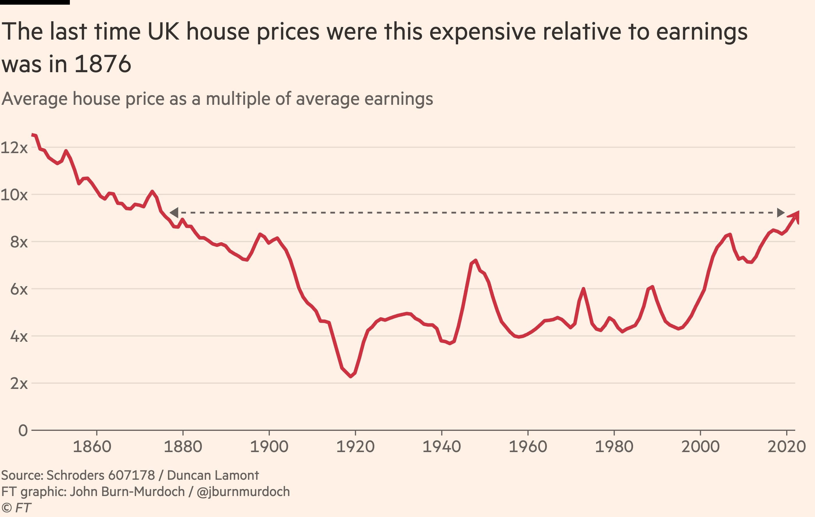 John Burn-Murdoch shows us how historically expensive housing in the UK is getting.