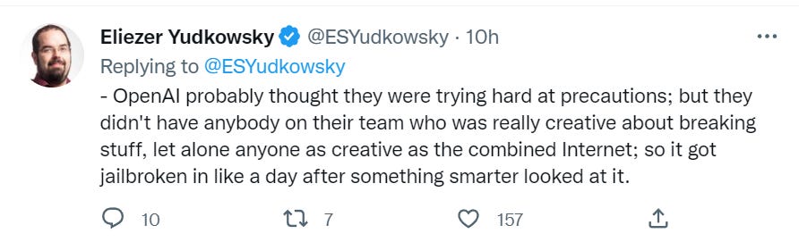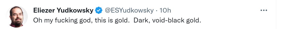 Let’s start with the obvious. I’ll start with the end of the thread for dramatic reasons, then loop around. Intro, by Eliezer.