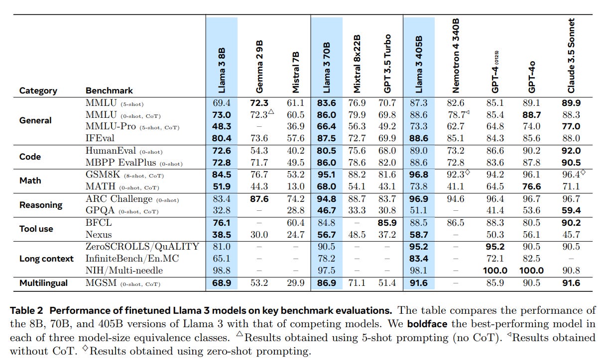 They mention that they do not use Mixture of Experts and stick to a standard dense Transformer model architecture, in favor of simplicity. Similarly, they use standard supervised fine tuning, rejection sampling and DPO for post training. It sounds like Llama 3’s ‘secret sauce’ is that it is big and uses lots of good data, did (presumably) competent execution throughout, and otherwise there is no secret.