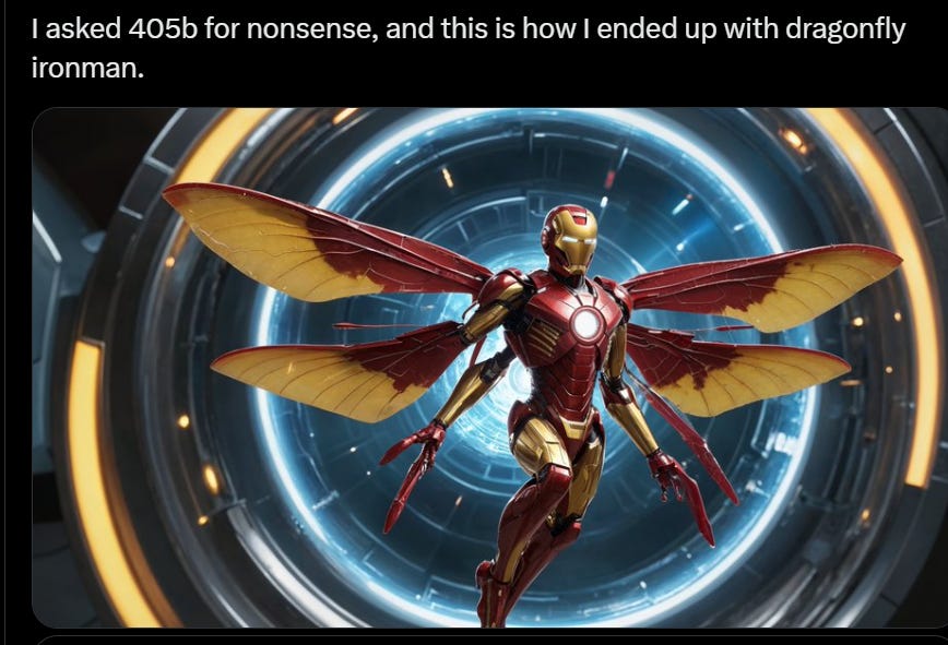 I'm loving experimenting with 405b. You can boost the temperature right up and it seems to hold its own. You can ask it to write nonsense and it's fascinating.