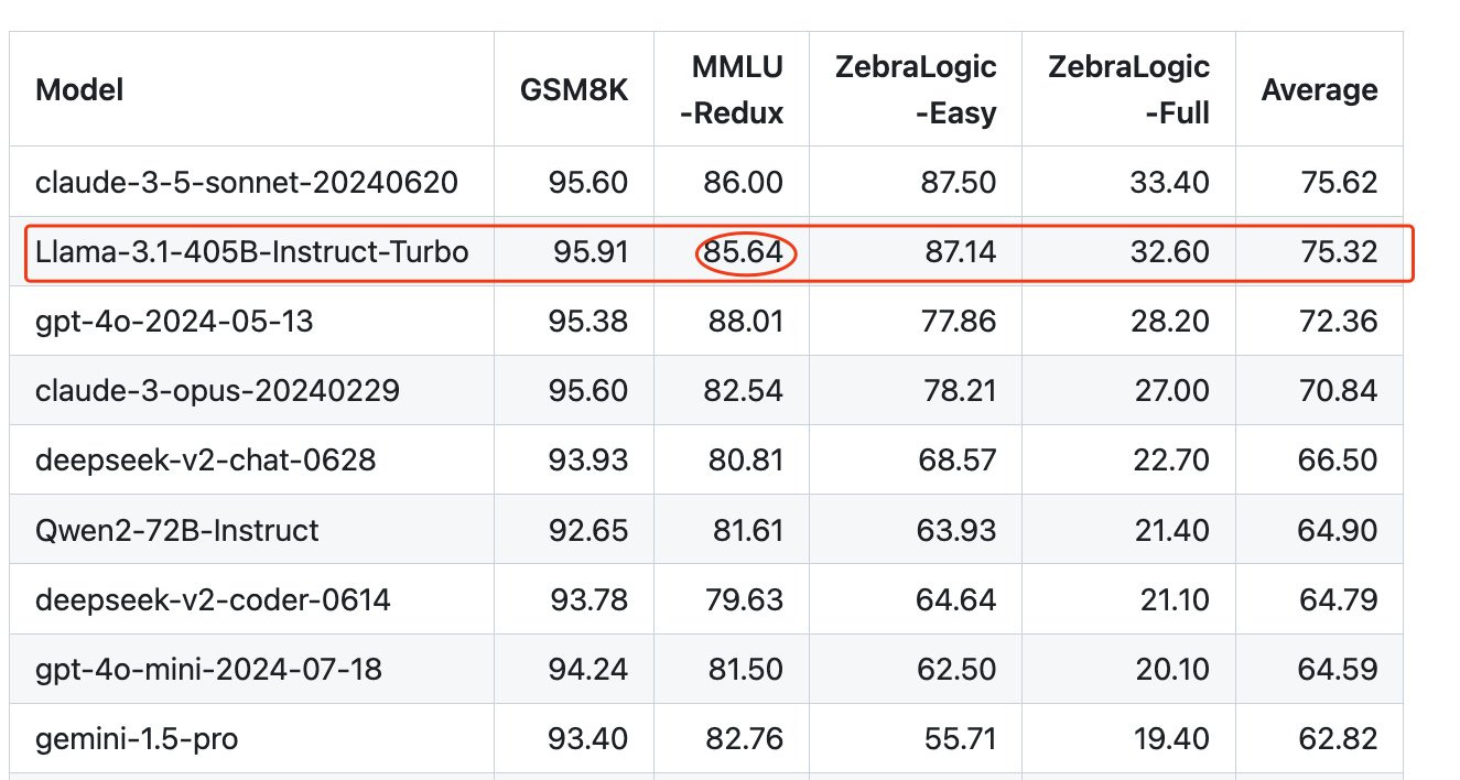 It comes in second overall on ZeroEval slightly behind Claude 3.5 Sonnet: