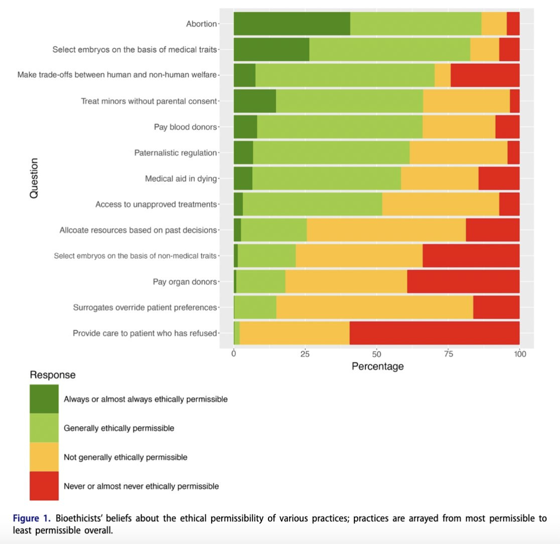 It seems ~75% of ‘bioethicists’ think that abiding by agreements because you agreed is not usually ethically permissible. About 20% think it is almost never permissible. It has been pointed out to me that no, what this presumably means is the past decisions of the patients. Except when smokers get first crack at the Covid vaccine. So yeah.