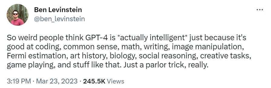 Does this all add up to a proto-AGI? Is it actually intelligent? Does it show ‘sparks’ of general intelligence, as the paper words it?