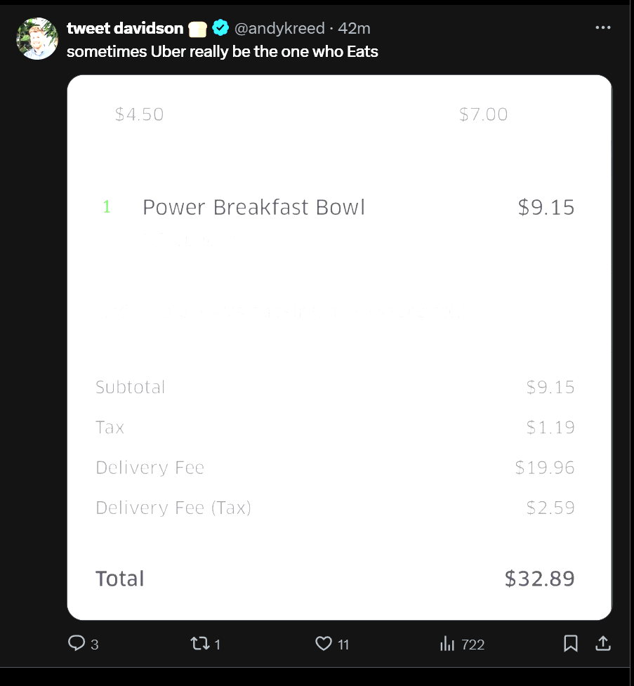 A thread of (claimed human right to below real cost) DoorDash takes.