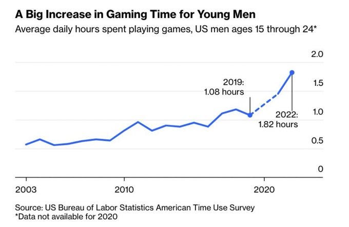 In other news, gaming overall was way up for young men as of 2022: