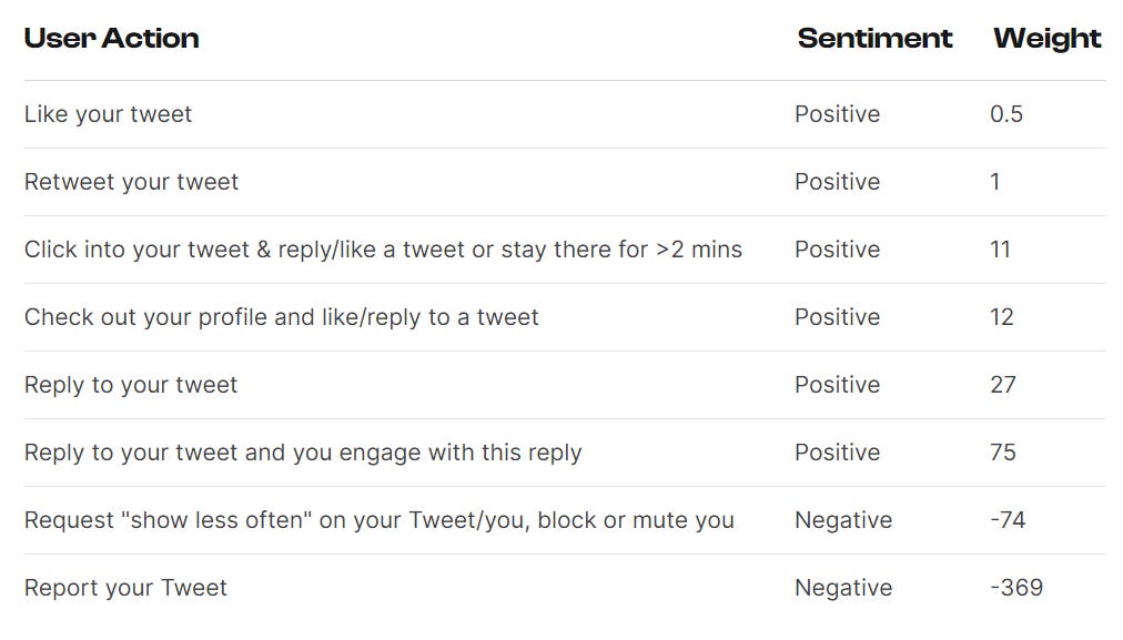 We have better data now. Twitter ‘open sourced’ its algorithm - the quote marks are because we are missing some of the details necessary to recreate the whole algorithm. There is still a lot of useful information. You can find the announcement here and the GitHub depot here. Brandon Gorrell describes the algorithm at Pirate Wires.