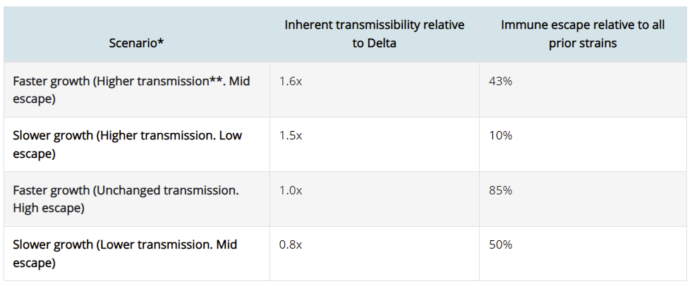 Chance that Omicron has a 100% or bigger transmission advantage in practice versus Delta: 70% → 65%.