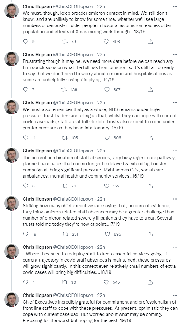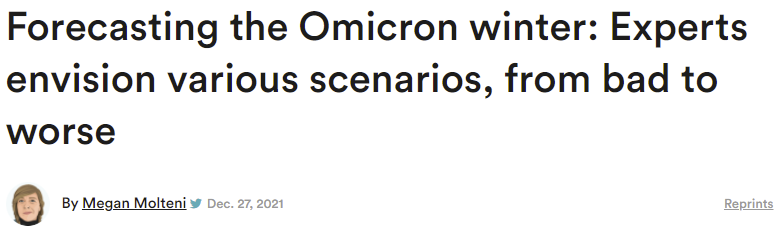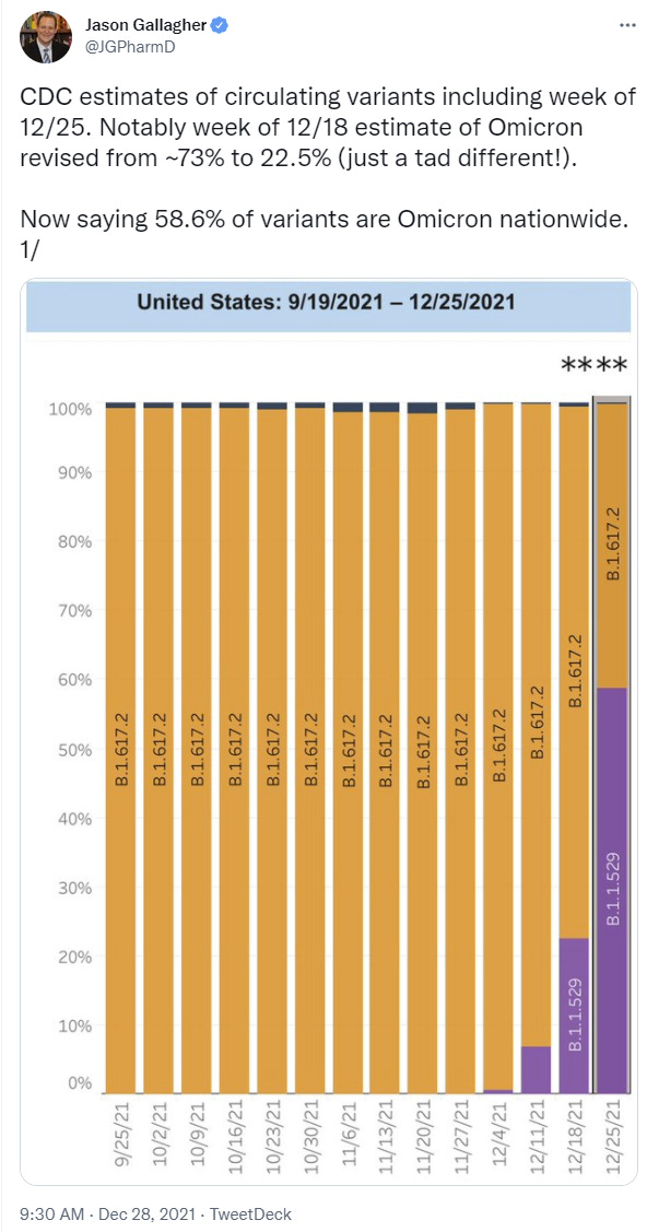 By Thursday data should have caught up, and we’ll have a strong data point on the severity level of Omicron. We won’t know if cases peaked or not, because of the holidays, unless the numbers kept going up in spite of the holidays.