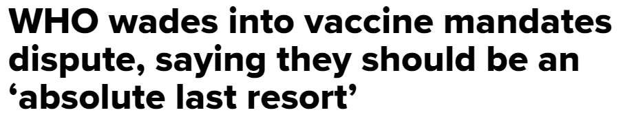 Also, as for vaccinations, you know what works, however much one might still not want to use them? Vaccine mandates. So guess what the WHO is warning people against right now.